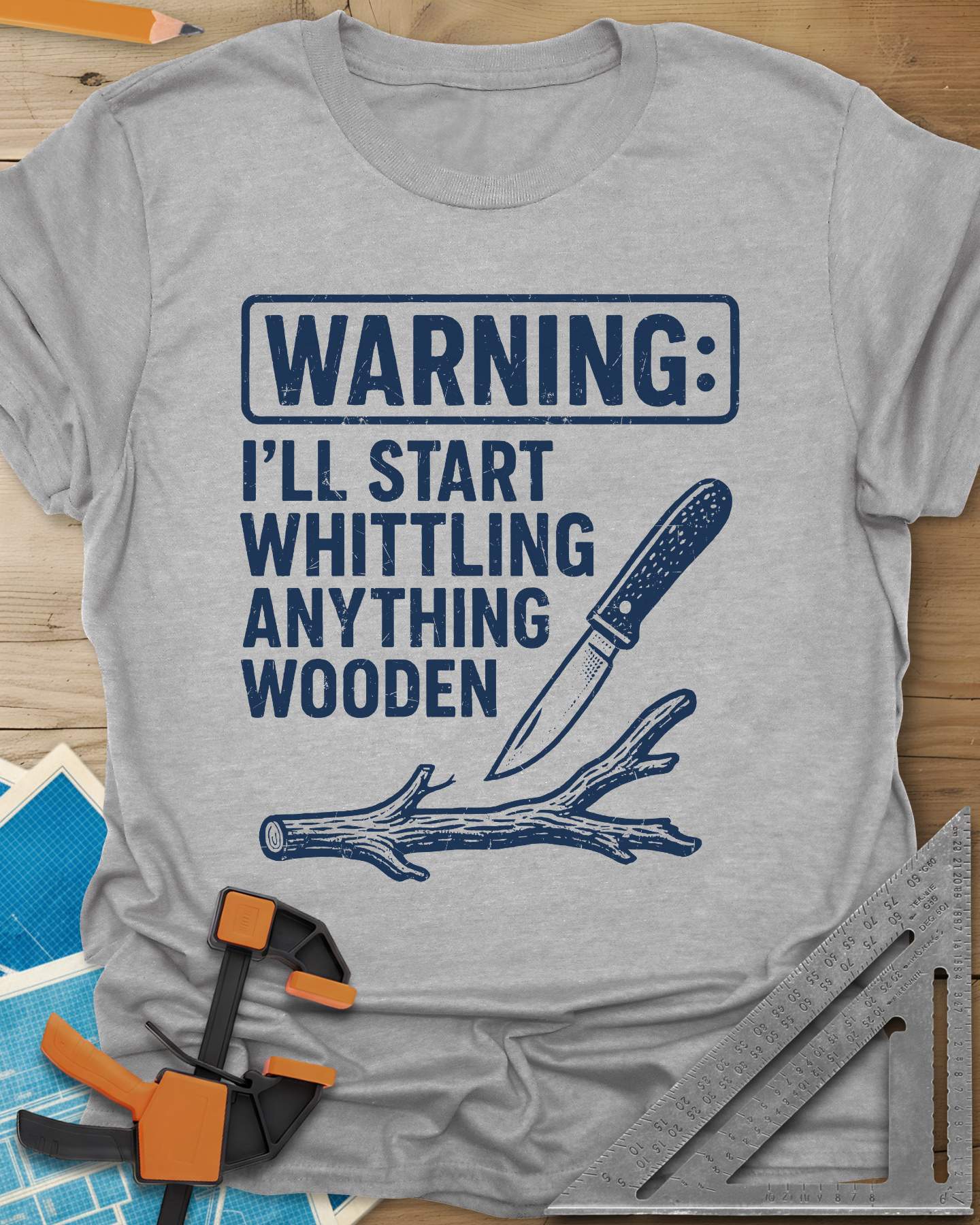 Straightforward shop humor for whittlers who cannot help themselves. Simple, funny, and easy to wear. A great gift for anyone who sees wood as potential.